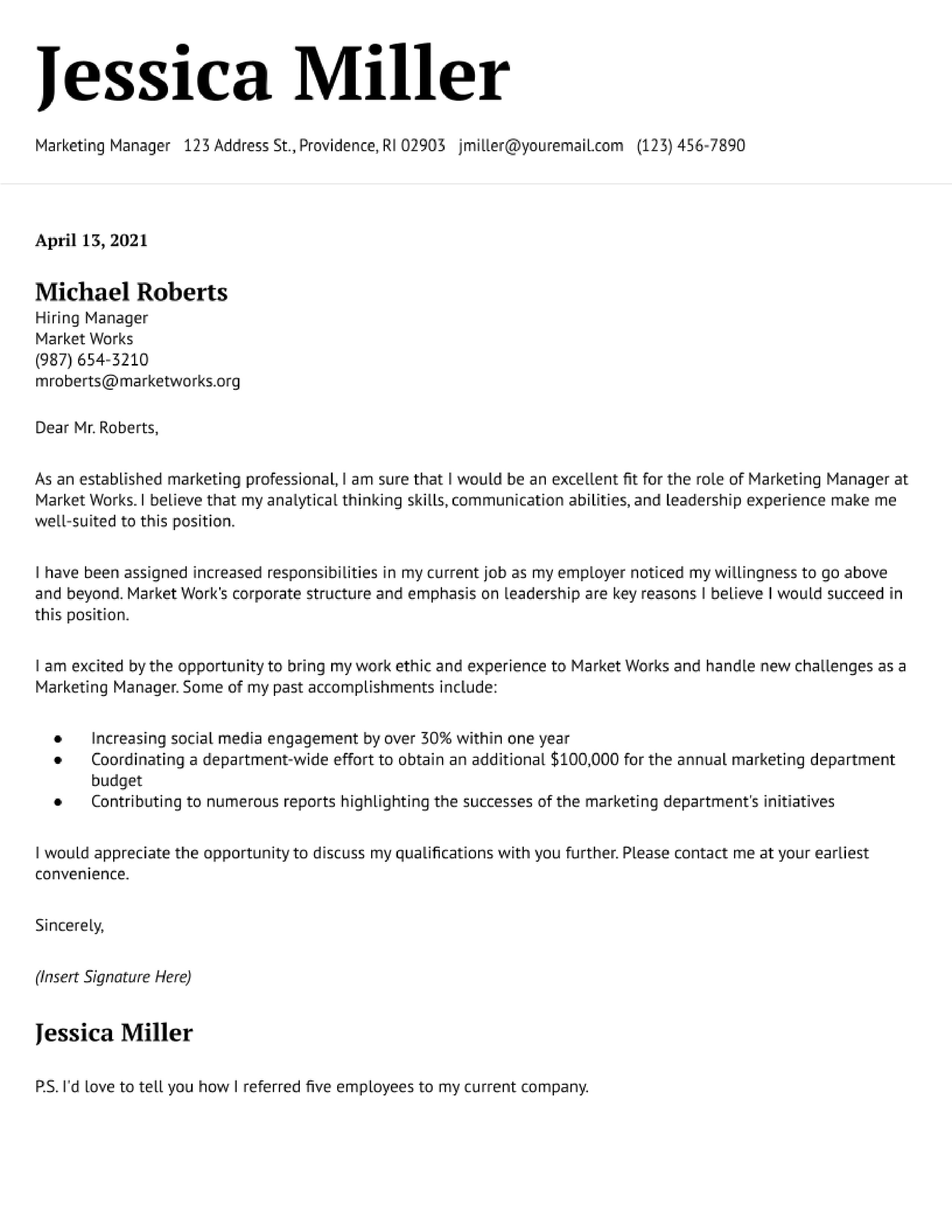 Marketing Manager Cover Letter Examples In 2022 Resumebuilder Com